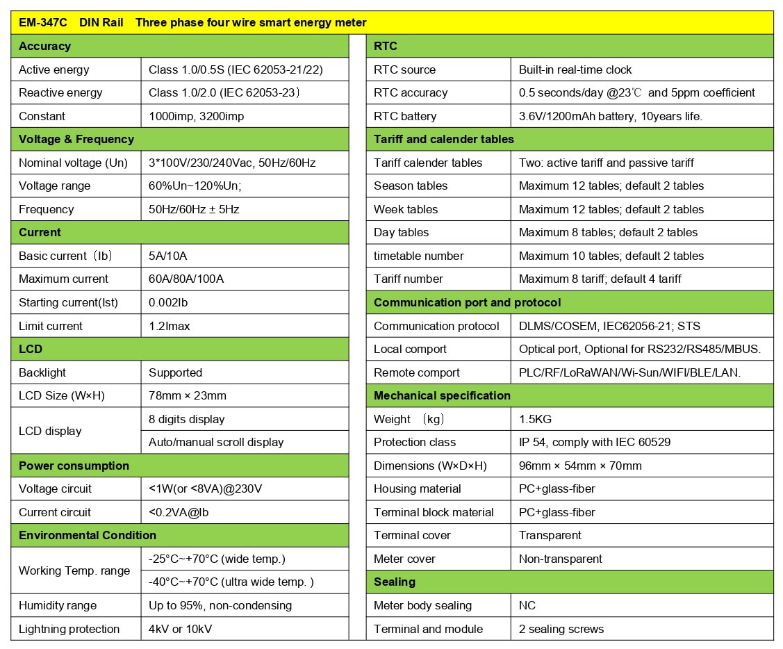 EM-1347C is a 35mm DIN rail type and economic solution three phase prepaid AMI meter, which is used to measure electric energy accurately for commercial and residential customers. Meter supports varieties communication mediums for remote management and reading with the inbuilt module such as PLC/RF/2G/4G/LoRaWAN/Wi-Sun/WIFI/BLE etc.